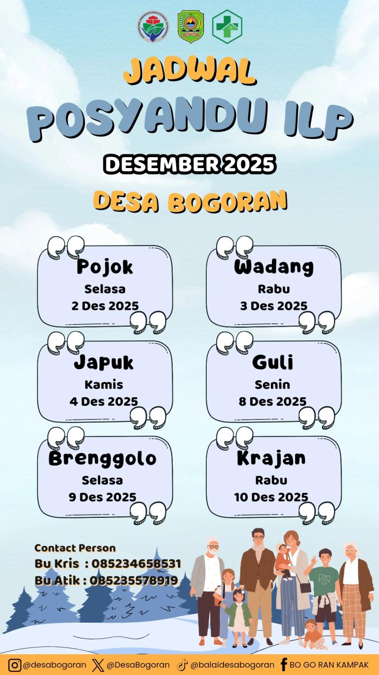 11 September 2025 10:27:54 WIB admin bogoranTelah dilaksanakan serangkaian kegiatan Posyandu ILP mulai dari Pojok (Senin, 4 Agustus 2025), Wadang (Selasa, 5 Agustus 2025), Japuk (Rabu, 6 Agustus 2025), Guli (Kamis, 7 Agustus 2025), Brenggolo (Senin, 11 Agustus 2025) dan Krajan (Rabu, 13 Agustus 2025). Dalam posyandu bulan ini selain dengan pe... ..selengkapnya