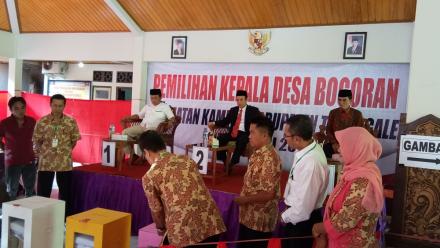 Desa Bogoran terdiri dari 3 dusun, Krajan, Branjang, dan Gambar. Oleh karena itu, meskipun pemilihan suara dilakukan di balai desa, namun bilik dan kotak suara dibuat perdusun. Hal ini untuk mengantisipasi jika terjadi perolehan suara yang sama. Apabila hasil pemilihan kepala desa seri maka penetuannya berdasarkan pemenang sah di masing-masing. Panitia menyiapkan tiga bilik untuk masing-maisng dusun. Hal ini dilakukan untuk memperlancar kegiatan pemilihan.