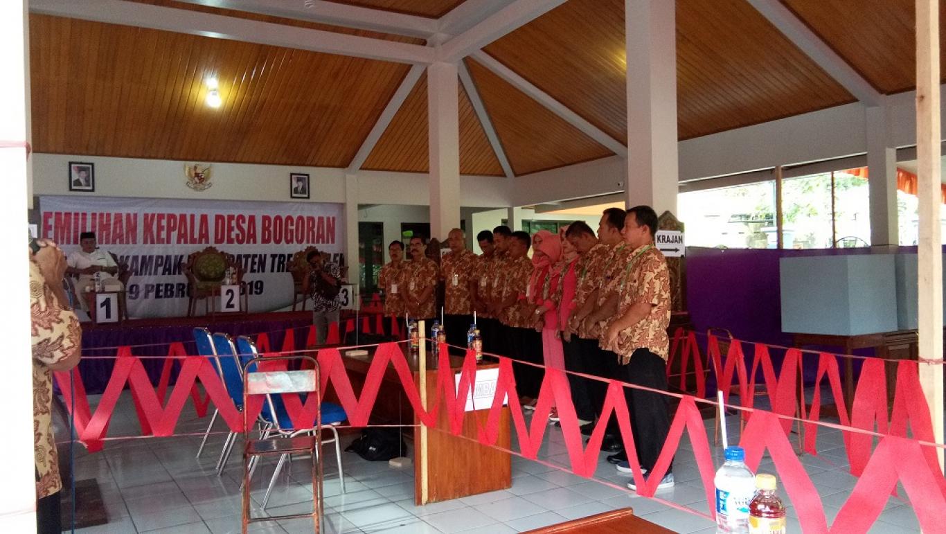 Sabtu, 9 Februari 2019 Balai Desa Bogoran ramai dipadati oleh warga untuk menggunakan hak suaranya memilih kepala desa. mereka mulai berdatangan sejak pagi untuk menghindari antrian panjang. Melihat antusias yang tinggi, linmas pilkades tidak tinggal diam. Mereka memandu warga untuk antri sesuai dengan dusunnya masing-masing. Ibu-ibu yang membawa anak, lansia, dan warga tuna grahita juga diutamakan.