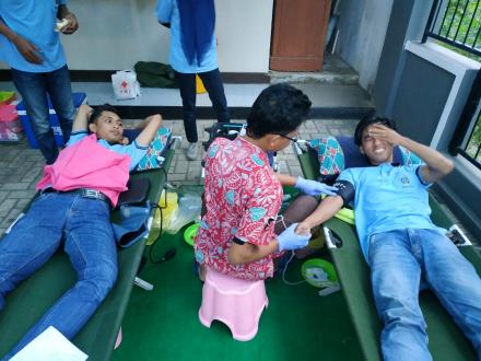 Setelah acara sosialisasi selesai maka dilanjutkan acara donor darah bersama petugas dari PMI Kabupaten Trenggalek. Donor darah adalah proses pengambilan darah dari seseorang secara sukarela untuk disimpan di bank darah sebagai stok darah untuk kemudian digunakan untuk transfusi darah. Namun tidak semua masyarakat yang hadir mengikuti donor danar, beberapa undangan tidak memenuhi syarat dan ada pula yang merasa takut.
