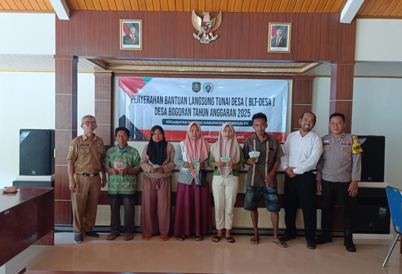 Acara penyaluran BLT-Desa diawali dengan sambutan dari Kepala Desa Bogoran yang menyampaikan pentingnya bantuan ini dalam meringankan beban ekonomi warga. Selanjutnya, perwakilan dari Kecamatan Kampak turut memberikan sambutan serta menegaskan bahwa penyaluran BLT-Desa dilakukan sesuai dengan ketentuan yang berlaku.