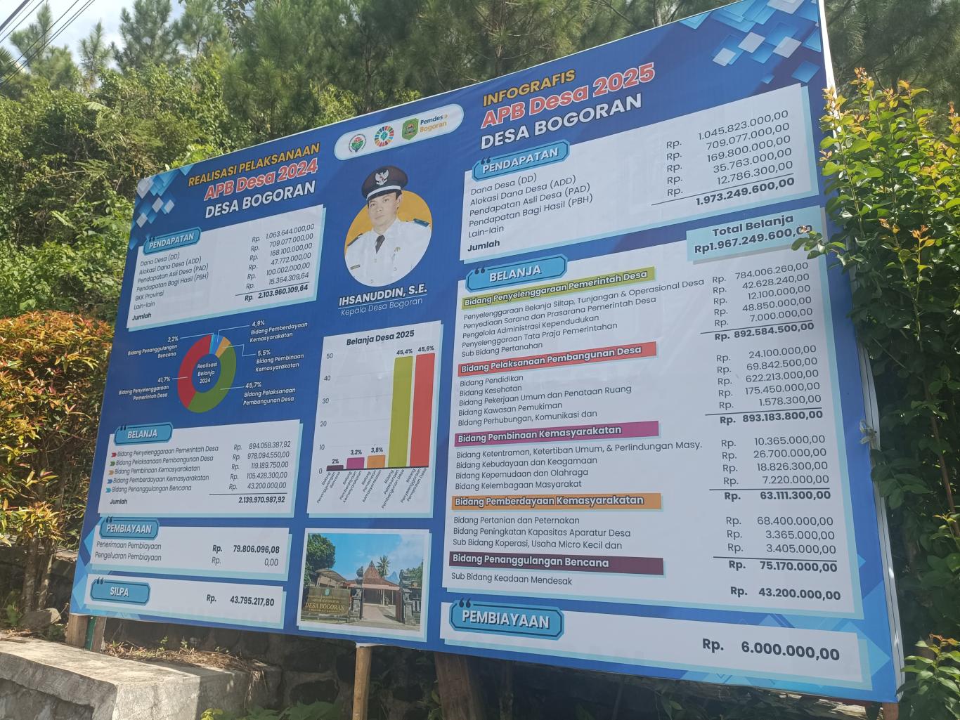 Sebagai bentuk transparansi pengelolaan keuangan desa, Pemerintah Desa Bogoran telah merilis Infografis Anggaran Pendapatan dan Belanja Desa (APBDes) Tahun 2025. Infografis ini merupakan bentuk keterbukaan informasi kepada masyarakat Desa Bogoran.