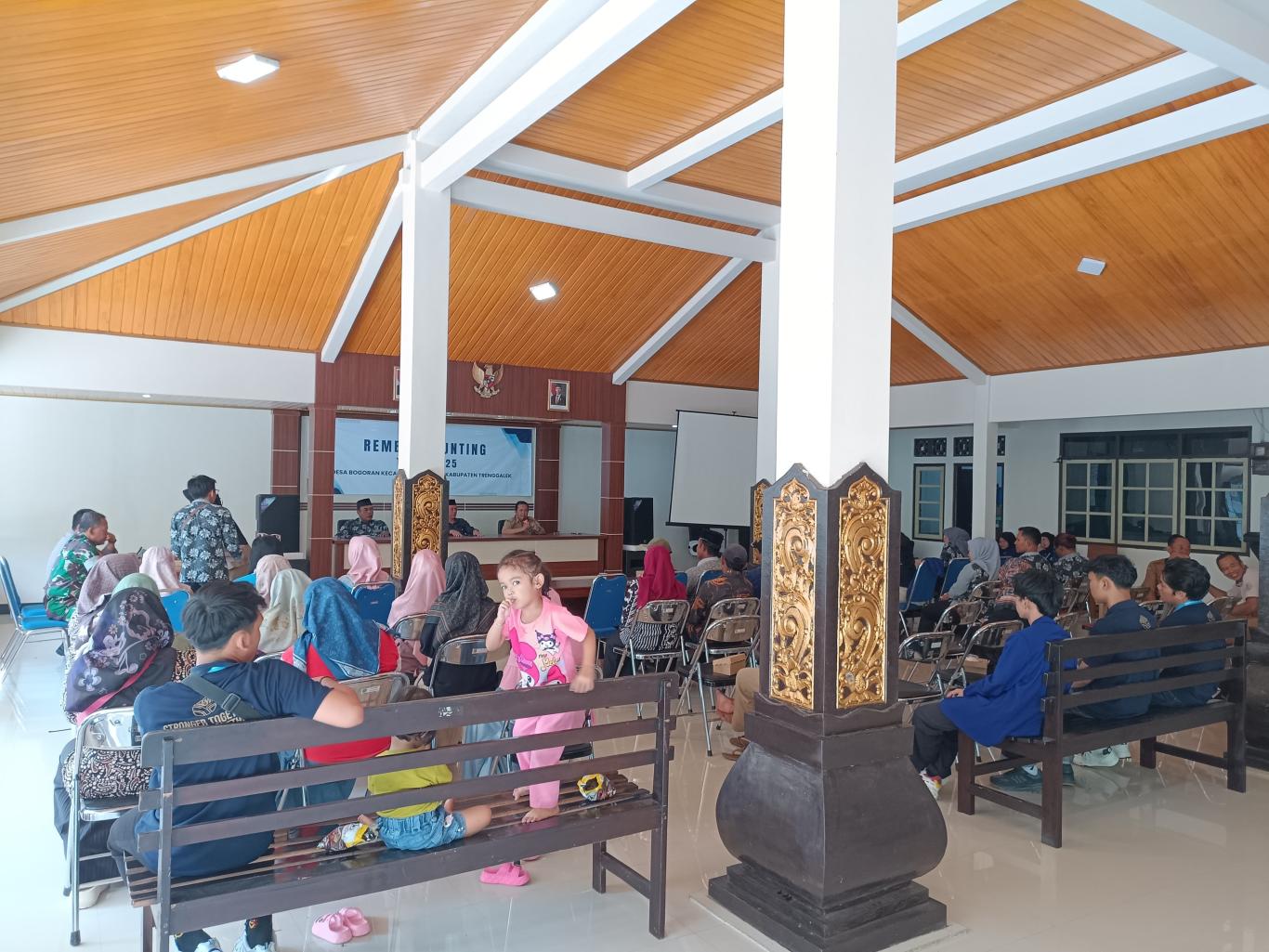 Pemerintah Desa Bogoran telah melaksanakan kegiatan Rembug Stunting pada Senin, 23 Juni 2025, bertempat di Balai Desa Bogoran dan dimulai pukul 09.00 WIB. Kegiatan ini menjadi bagian dari upaya percepatan penurunan angka stunting dan peningkatan kualitas kesehatan anak di tingkat desa.