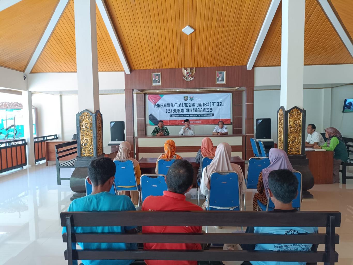 Telah dilaksanakan peyerahan Bantuan Langsung Tunai Desa untuk periode bulan September pada hari Rabu, 24 September 2025 pukul 09.00 WIB di Balai Desa Bogoran. Kegiatan ini dihadiri pula oleh Camat Kampak Bapak Drs. Budi Priyono dan juga Babinsa desa Bogoran.